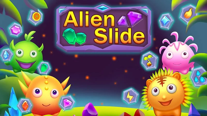 Let the same aliens collide and remove all aliens. Drag an alien to move it and slide two aliens next to each other to collide and remove the aliens.